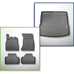 Conjunto de alfombrilla para maletero y alfombrillas para el interior del coche TPE para: Audi Q5 II FY SUV (01.2017-08.2024) - también para modelos con rieles; no adecuado para versión TFSI e plug-in hybrid; asientos traseros fijos