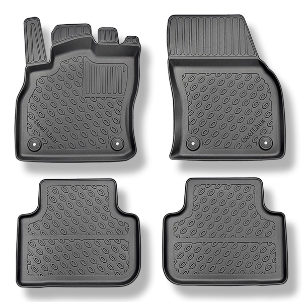 - Las alfombrillas de coche de la clase Premium, es decir, las alfombrillas de la más alta calidad, están hechas de un material especial TPE Premium, resistente a altas y bajas temperaturas, así como a aceites y productos químicos. Las alfombrillas son antideslizantes, extremadamente duraderas y tienen bordes altos que retienen perfectamente la suciedad dentro de la alfombrilla.