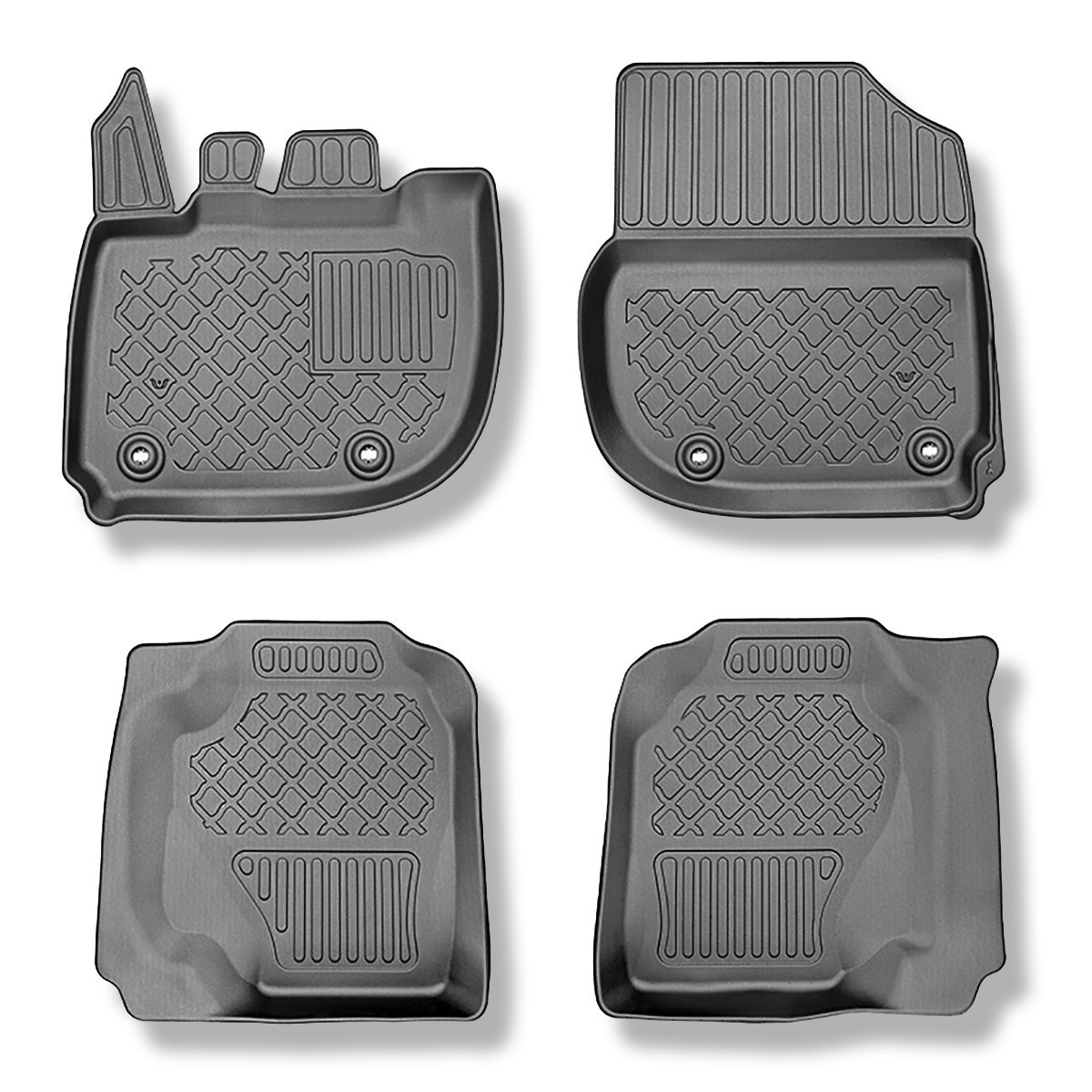 - Las alfombrillas para el interior del coche y la alfombrilla para el maletero se caracterizan por un diseño moderno con acabado mate.