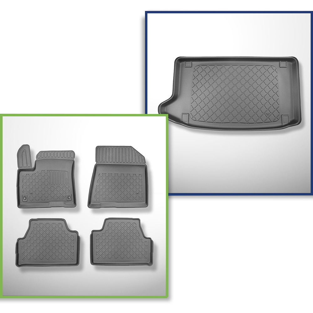 Conjunto de alfombrilla para maletero y alfombrillas para el interior del coche TPE para: Kia e-Soul SUV (05.2019-2024) - maletero superior; doble suelo en la posición superior