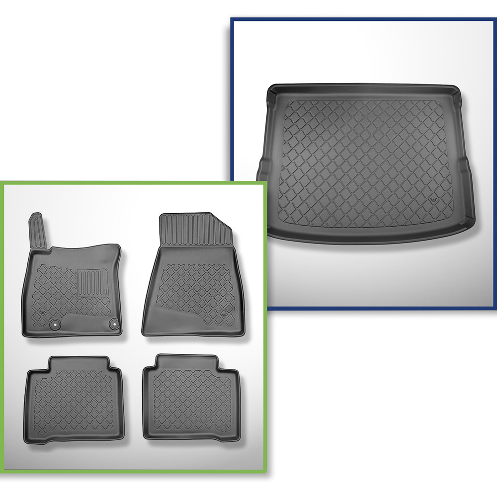 Conjunto de alfombrilla para maletero y alfombrillas para el interior del coche TPE para: Kia Niro II (SG2) Crossover (06.2022-....) - HEV Hybrid; EV (electric); maletero superior; suelo móvil en la posición superior; no adecuado para versión Plug-in híbr