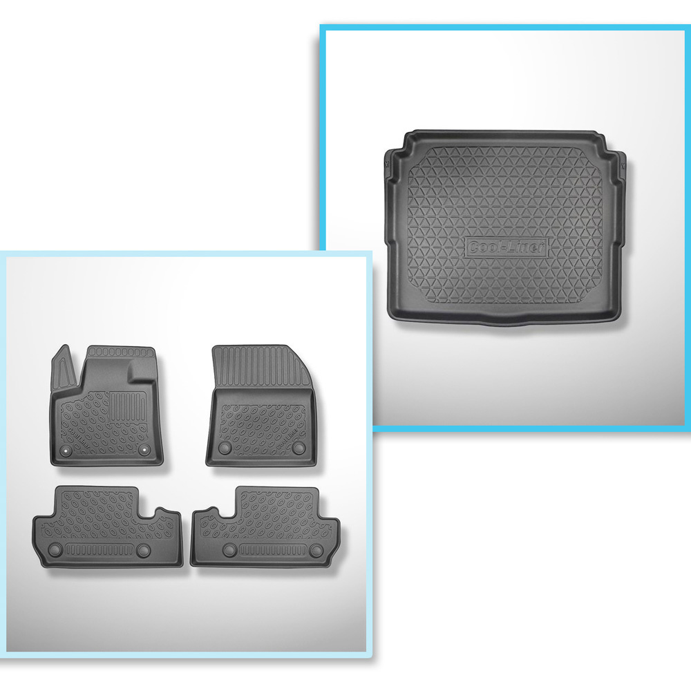 Conjunto de alfombrilla para maletero y alfombrillas para el interior del coche TPE para: Peugeot 3008 II SUV (11.2016-11.2023) - maletero inferior preparado para suelo móvil del maletero; bajo / sin suelo móvil del maletero (Flex Floor); no para la versi