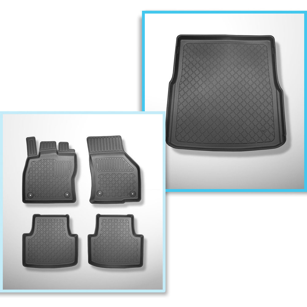 Conjunto de alfombrilla para maletero y alfombrillas para el interior del coche TPE para: Volkswagen Passat B8 Variant (12.2014-11.2023) - también para GTE Plug-in Hybrid