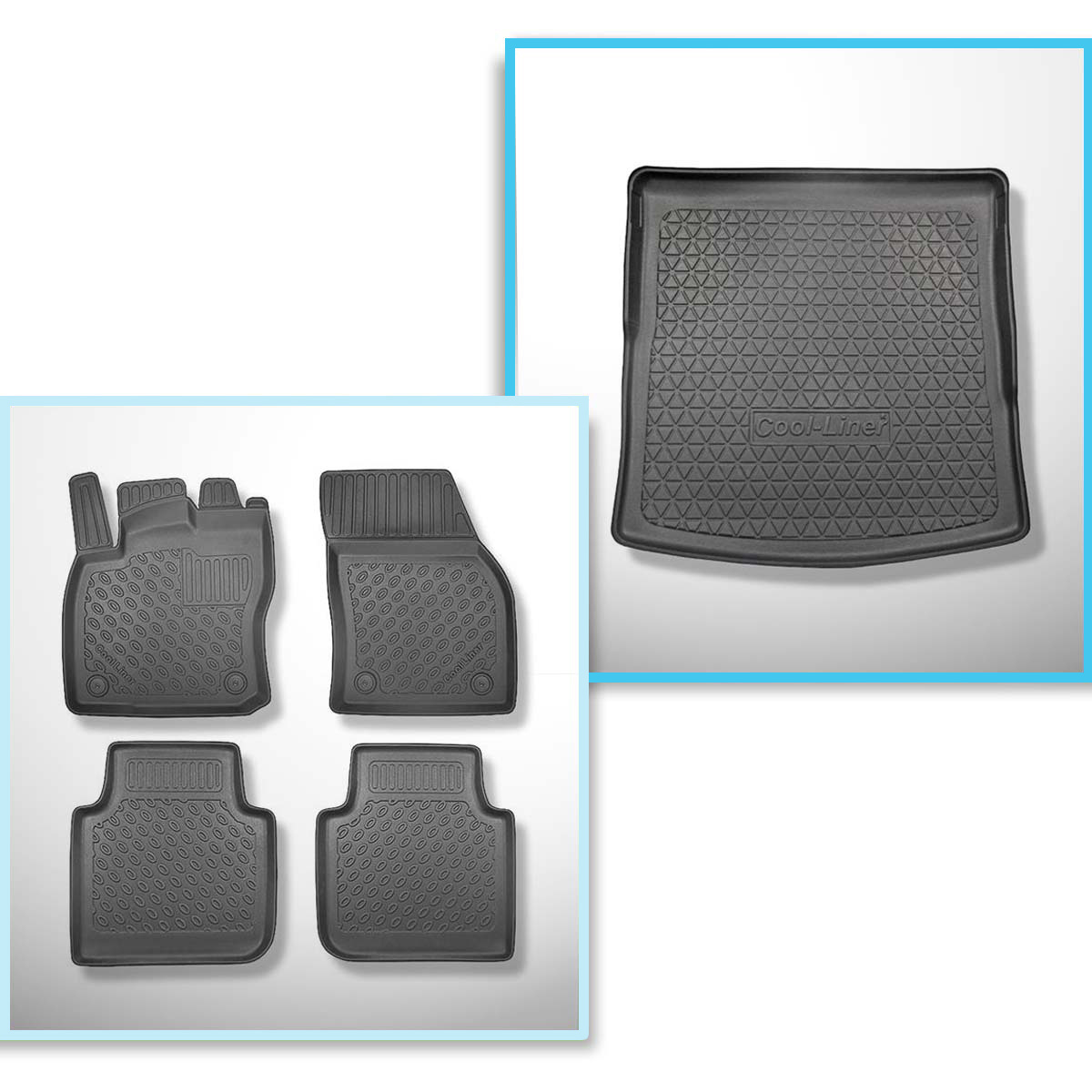 Conjunto de alfombrilla para maletero y alfombrillas para el interior del coche TPE PREMIUM para: Skoda Kodiaq SUV (03.2017-10.2023) - 5 plazas; maletero inferior sin suelo móvil / maletero superior en suelo móvil en la posición superior; sin tercera fila