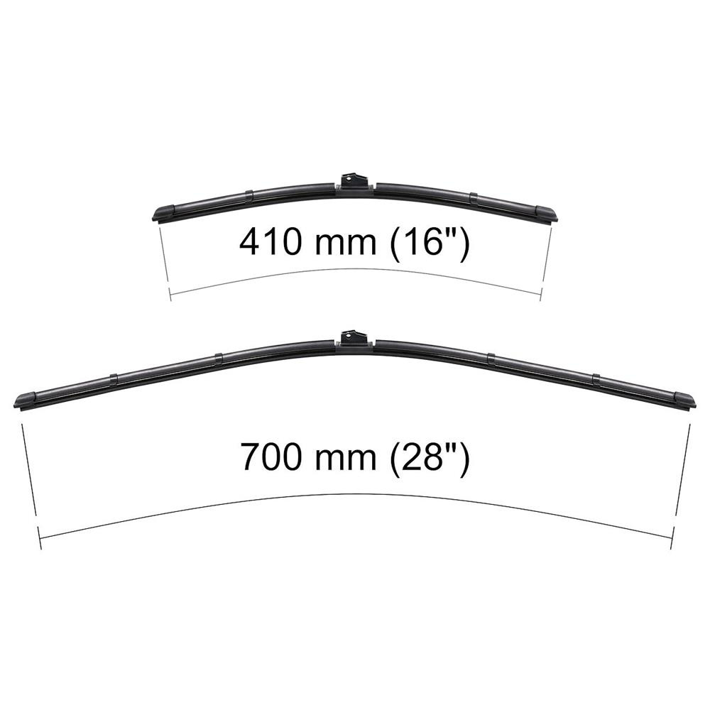 • Las escobillas planas no poseen un marco metálico. El inserto de goma se coloca directamente en los listones elásticos de la escobilla y, gracias a su forma, la escobilla apenas ofrece resistencia al aire. Esta forma del limpiaparabrisas y la ausencia de un marco metálico hacen que toda la escobilla se adhiera mejor al parabrisas.