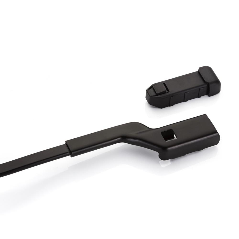 - Las escobillas planas no poseen un marco metálico. El inserto de goma se coloca directamente en los listones elásticos de la escobilla y, gracias a su forma, la escobilla apenas ofrece resistencia al aire. Esta forma del limpiaparabrisas y la ausencia de un marco metálico hacen que toda la escobilla se adhiera mejor al parabrisas.