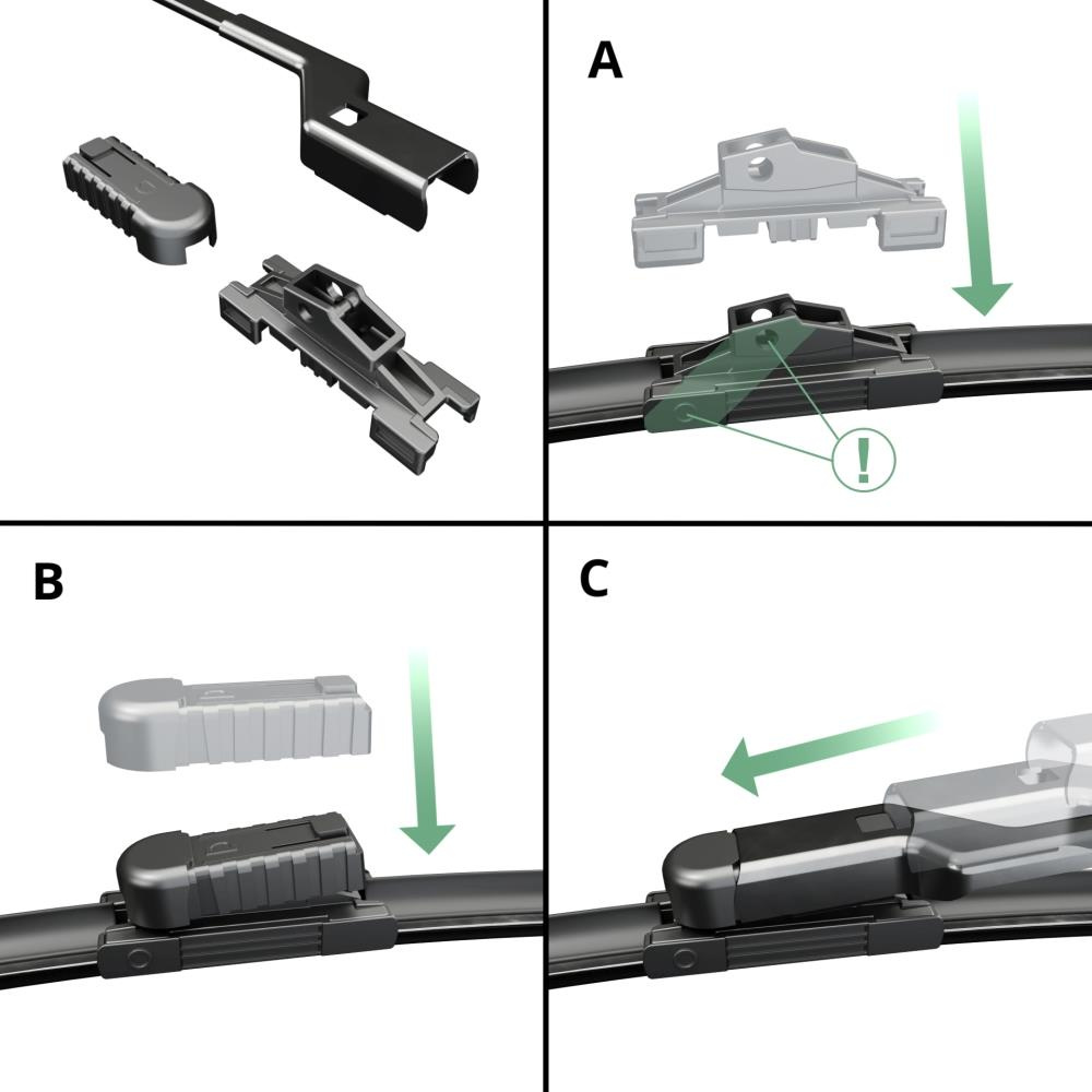 - Ventajas: máxima calidad de limpieza del parabrisas, excelente aerodinámica, funcionamiento silencioso, adaptación a cualquier clima, alta durabilidad.
