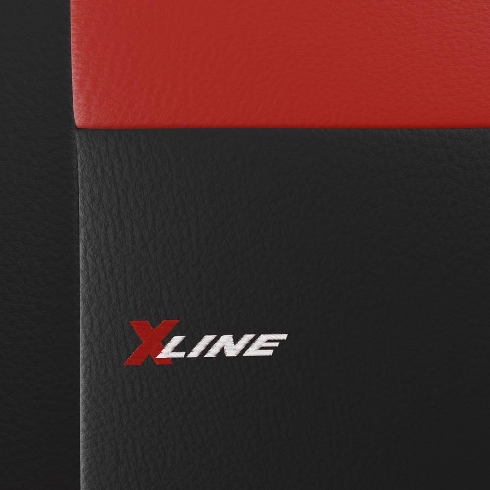 - Las fundas de los asientos delanteros están decoradas con delicados bordados a juego con los colores del conjunto.