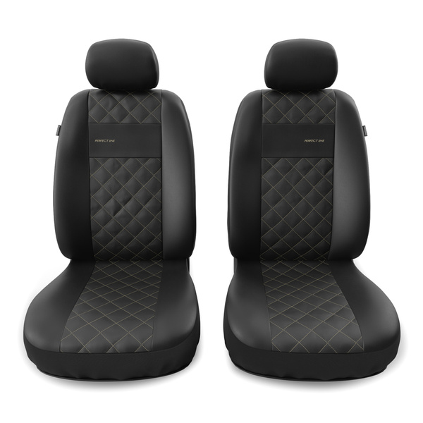 - Las fundas están fabricadas con cuero sintético resistente y antimanchas de color negro. En la parte central cuentan con un acolchado decorativo cosido con hilo de color beige. Las fundas delanteras están decoradas adicionalmente con un bordado.