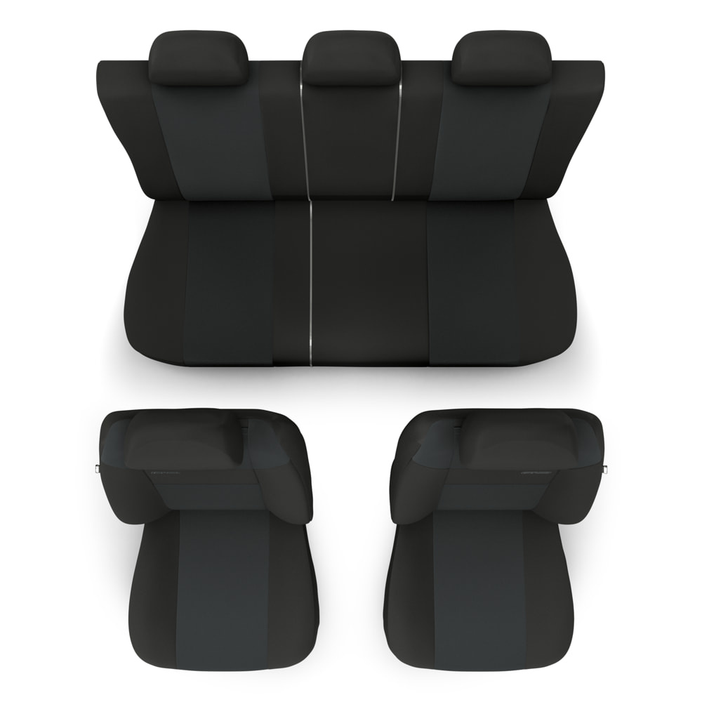 - Las fundas de los asientos traseros están equipadas con cremalleras, por lo que son adecuadas tanto para los asientos traseros unidos como divididos 2/1, a la derecha o a la izquierda.