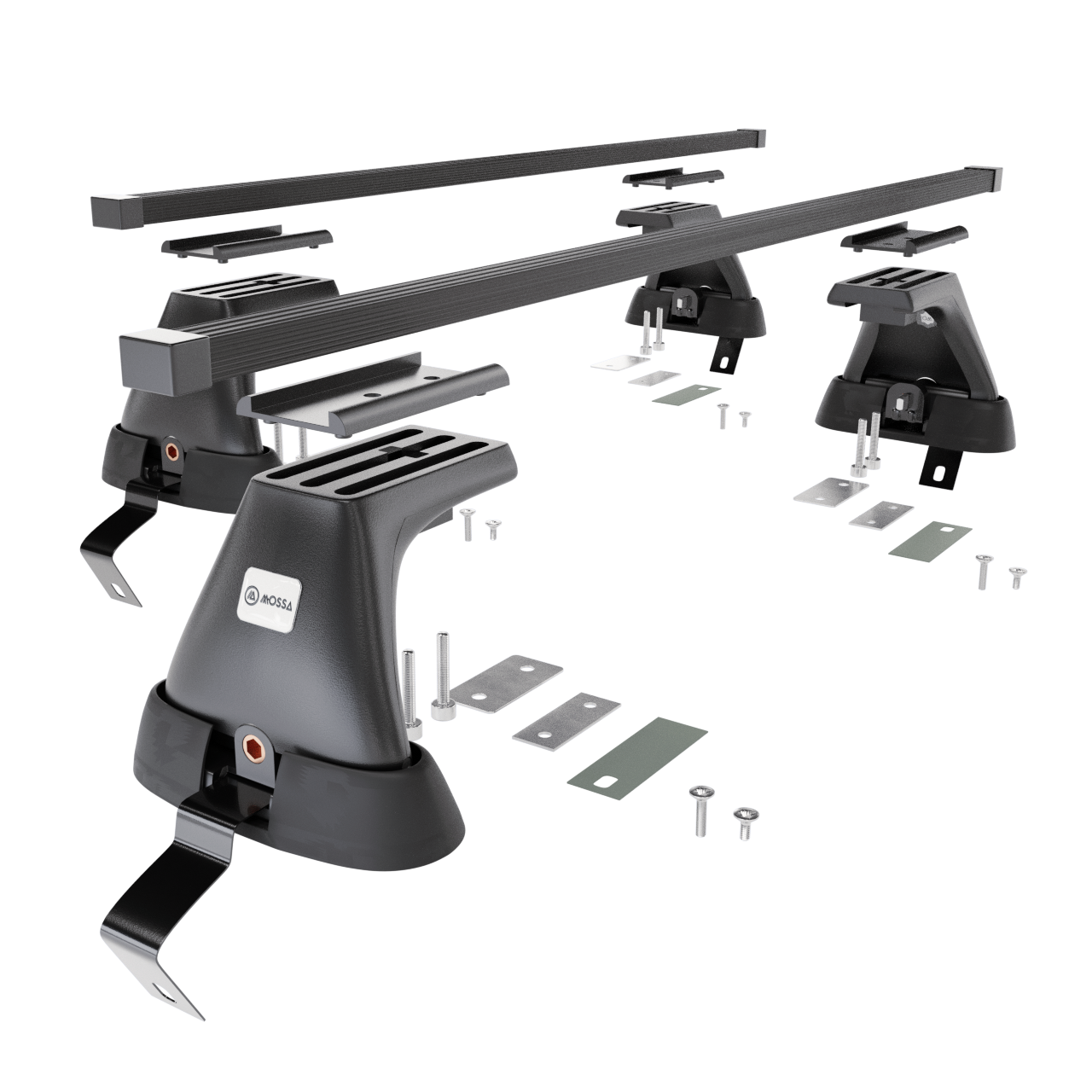 - 4 patas (soportes) – para techos normales/con puntos de montaje de fábrica, capacidad de carga 75 kg (o de acuerdo con las recomendaciones del fabricante del automóvil).