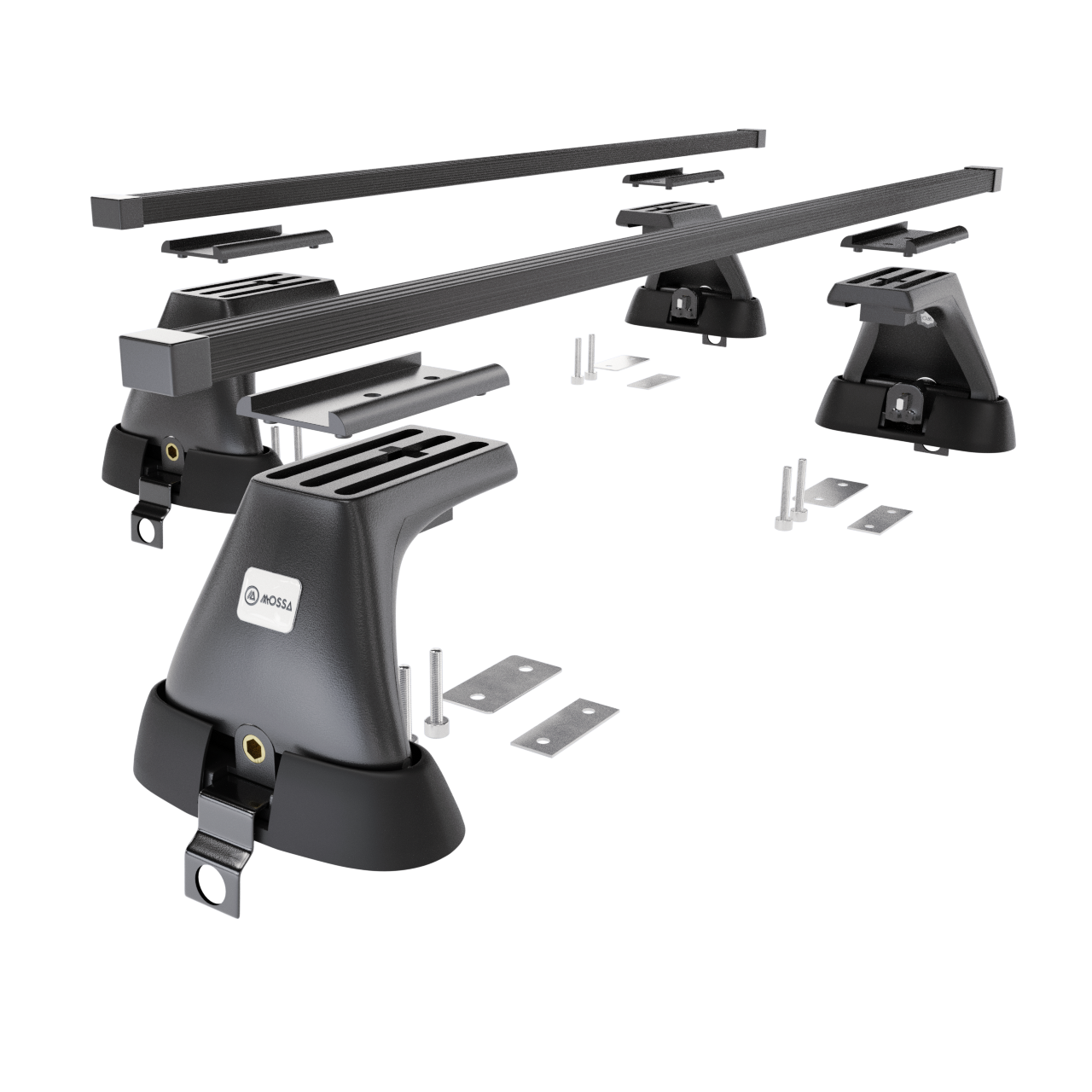 - 4 patas (soportes) – para techos normales/con puntos de montaje de fábrica, capacidad de carga 75 kg (o de acuerdo con las recomendaciones del fabricante del automóvil).