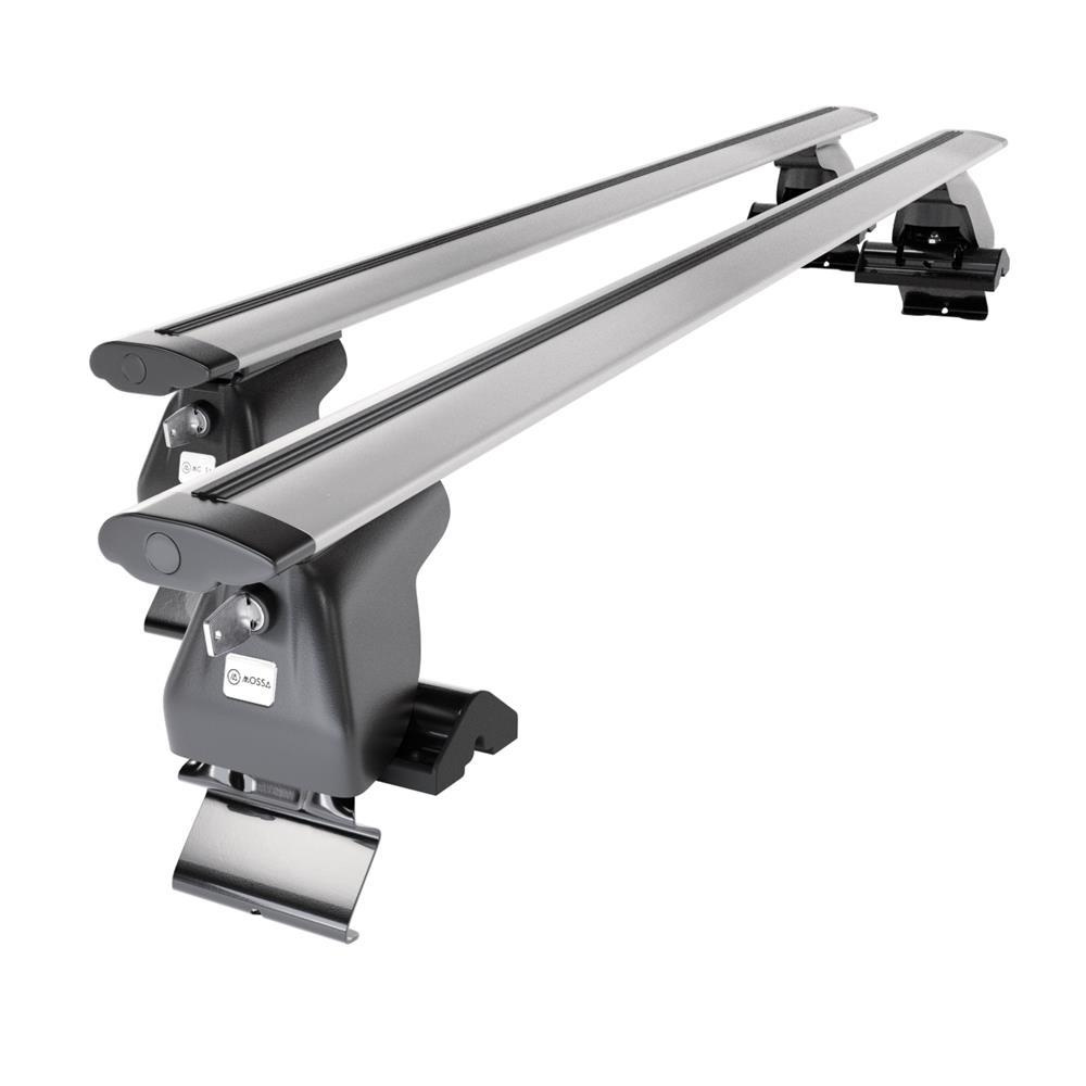 - La baca consta de 2 sólidas barras de aluminio y 4 soportes (patas), que se ajustan al techo de cada automóvil, teniendo en cuenta su modelo y generación.