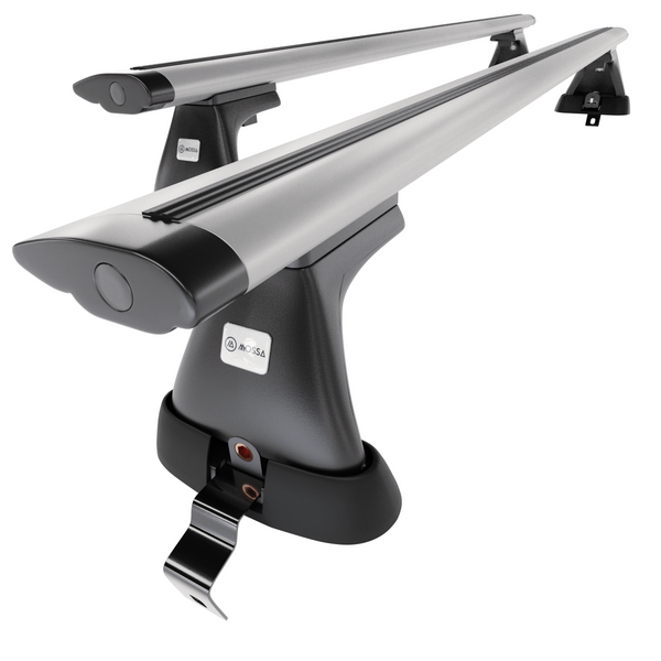 - La baca consta de 2 sólidas barras de aluminio y 4 soportes (patas), que se ajustan al techo de cada automóvil, teniendo en cuenta su modelo y generación.