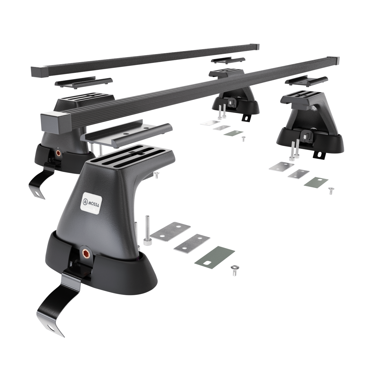 - 4 patas (soportes) – para techos normales/con puntos de montaje de fábrica, capacidad de carga 75 kg (o de acuerdo con las recomendaciones del fabricante del automóvil).